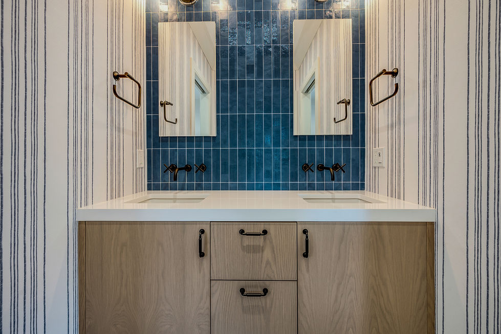 Discover our modern bathroom designs featuring blue tile accents, glass showers, and sleek vanities. Our designs offer a perfect combination of style and functionality, creating a refreshing and contemporary space for daily routines.